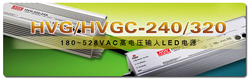 HVG/HVGC为xingkong.com高电压输入180~528VAC LED电源家族,目前有65W(HVG/HVGC-65)、100W(HVG/HVGC-100)及150W(HVG/HVGC-150)等三款不同功率产品。因应全球各地在大型LED灯具设计方面有愈来愈多采用高输入电压规划之市场潜力(如:北美地区与部分输入电压稳定性较差的国家与地区、或利用发电机作为输入电压供电之应用场合,一般常见的会采用如277VAC/347VAC/400VAC/480VAC等高输入电压),xingkong.com同步推出了HVG/HVGC-240及HVG/HVGC-320等四个系列LED防水电源供应器以满足此类应用需求。 沿袭HVG/HVGC既有产品设计理念,HVG/HVGC-240及HVG/HVGC-320采用金属外壳,提供了LED照明业界最常需求IP防护设计及输出调光选项,非常适合使用於天井灯、集鱼灯、植物生长灯、球场灯等应用。这四个系列都规划了5年的保固期。其他产品细节请参考产品特色中的资讯。
